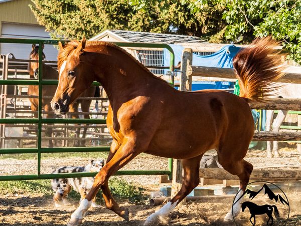 Penny is a 2021 Chestnut Arabian mare that is by HC Elitist who is owned by Diamond West Arabians in Hayden, ID. They also own her dam who is a daughter of *Khadraj NA+++/ who is very well known for being an outstanding western pleasure sire.